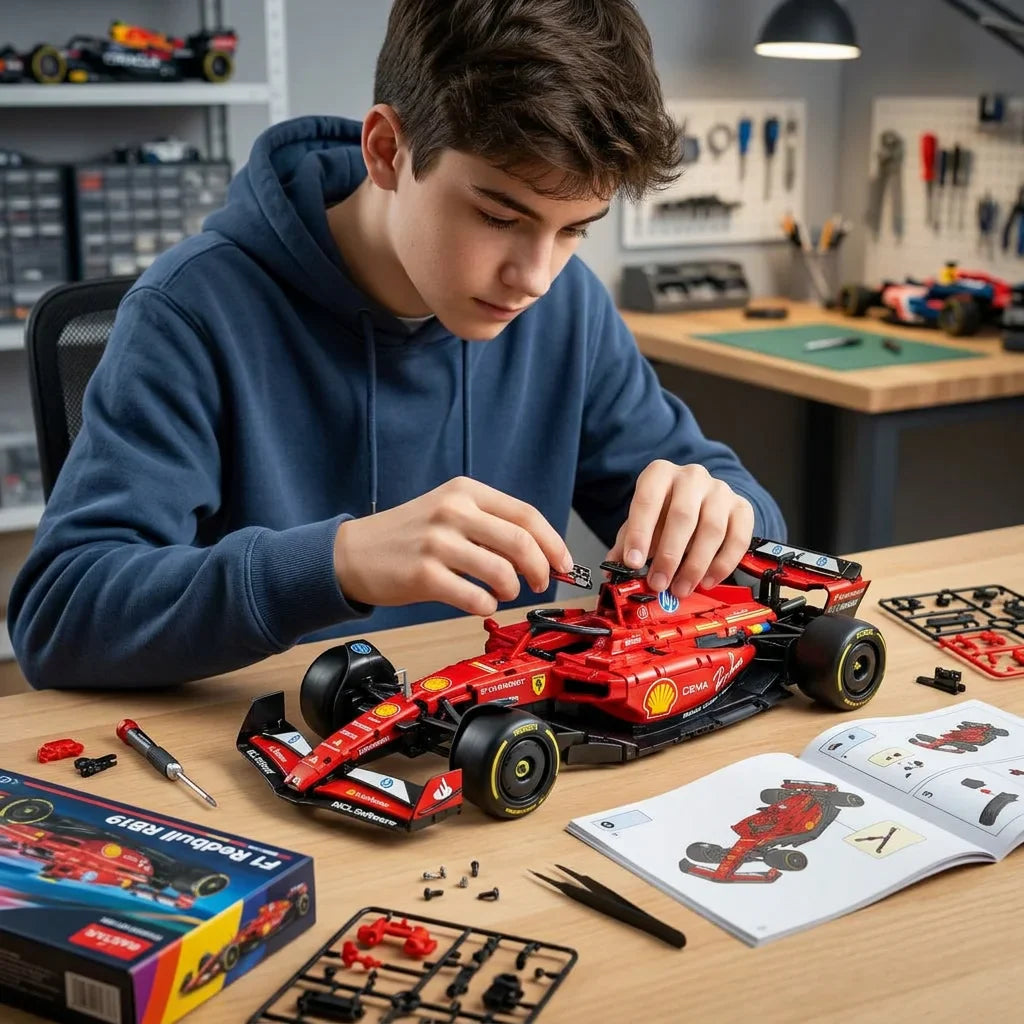 Experience the thrill of motorsport with this premium 1:8 scale racing car building set inspired by the iconic Ferrari Formula style. With over 2500 precision pieces, this model delivers an exciting and rewarding building experience for both collectors and racing enthusiasts.
